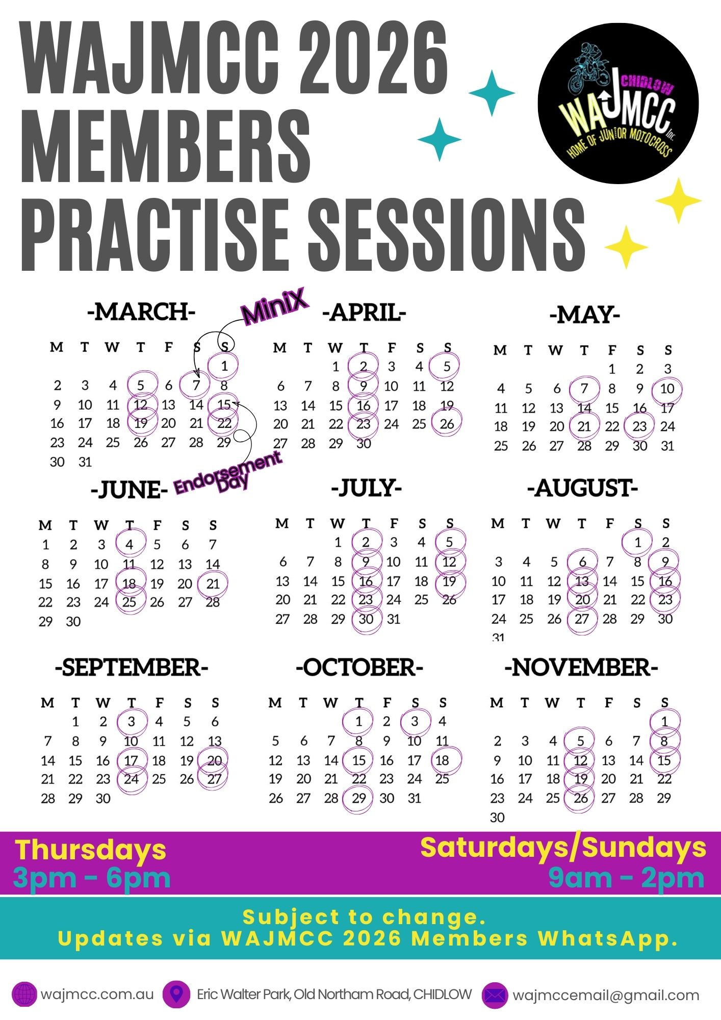 2026 EVENT CALENDARS - RACE & PRACTICE BELOW